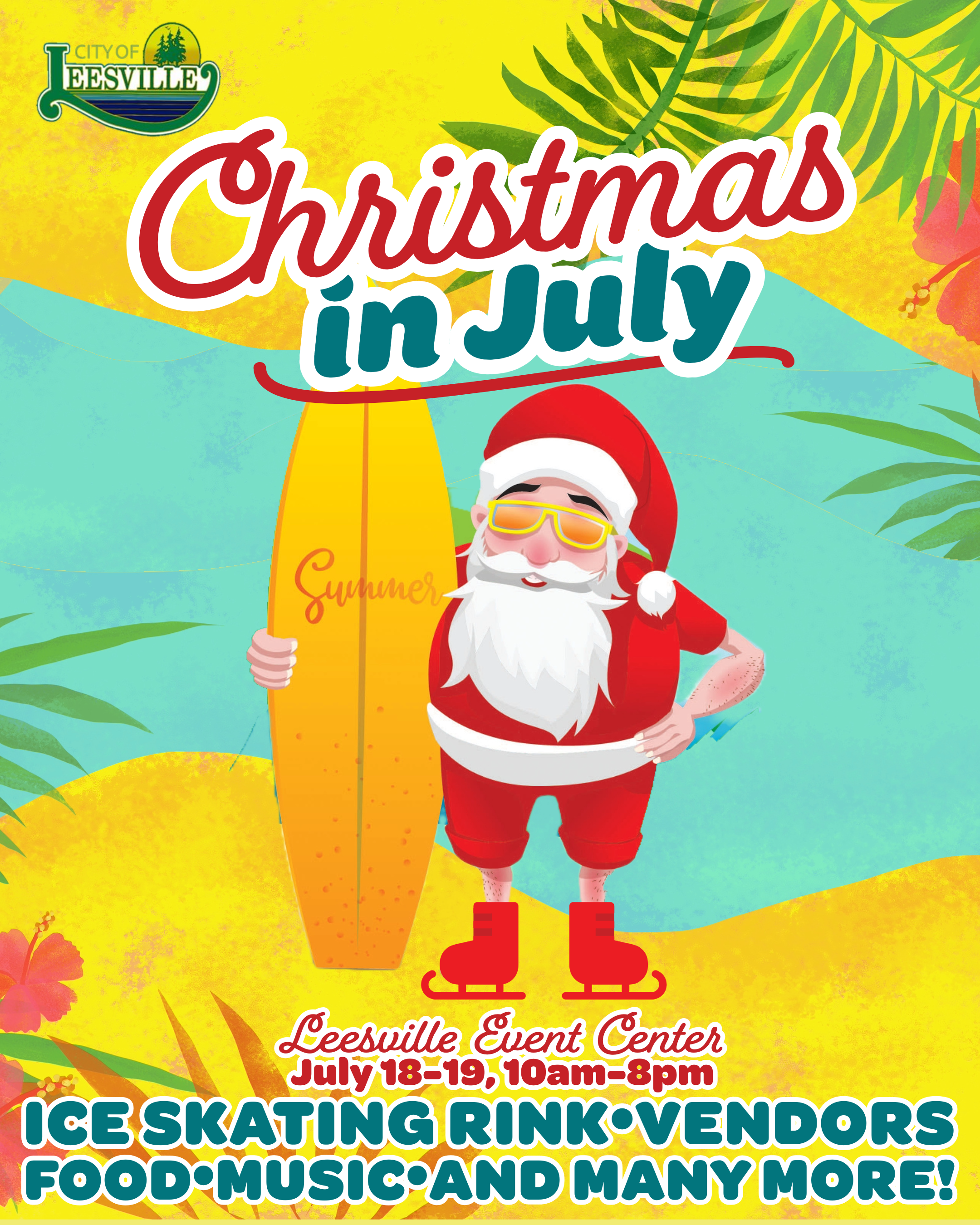 The City of Leesville would like to announce a new summer festival -- Christmas in July will be held on July 18-19, 2025 at the Leesville Event Center. We'll celebrate with ice skating, festive music, delicious food, exciting activities, and another incredible lineup of local vendors bringing the holiday spirit to life.
